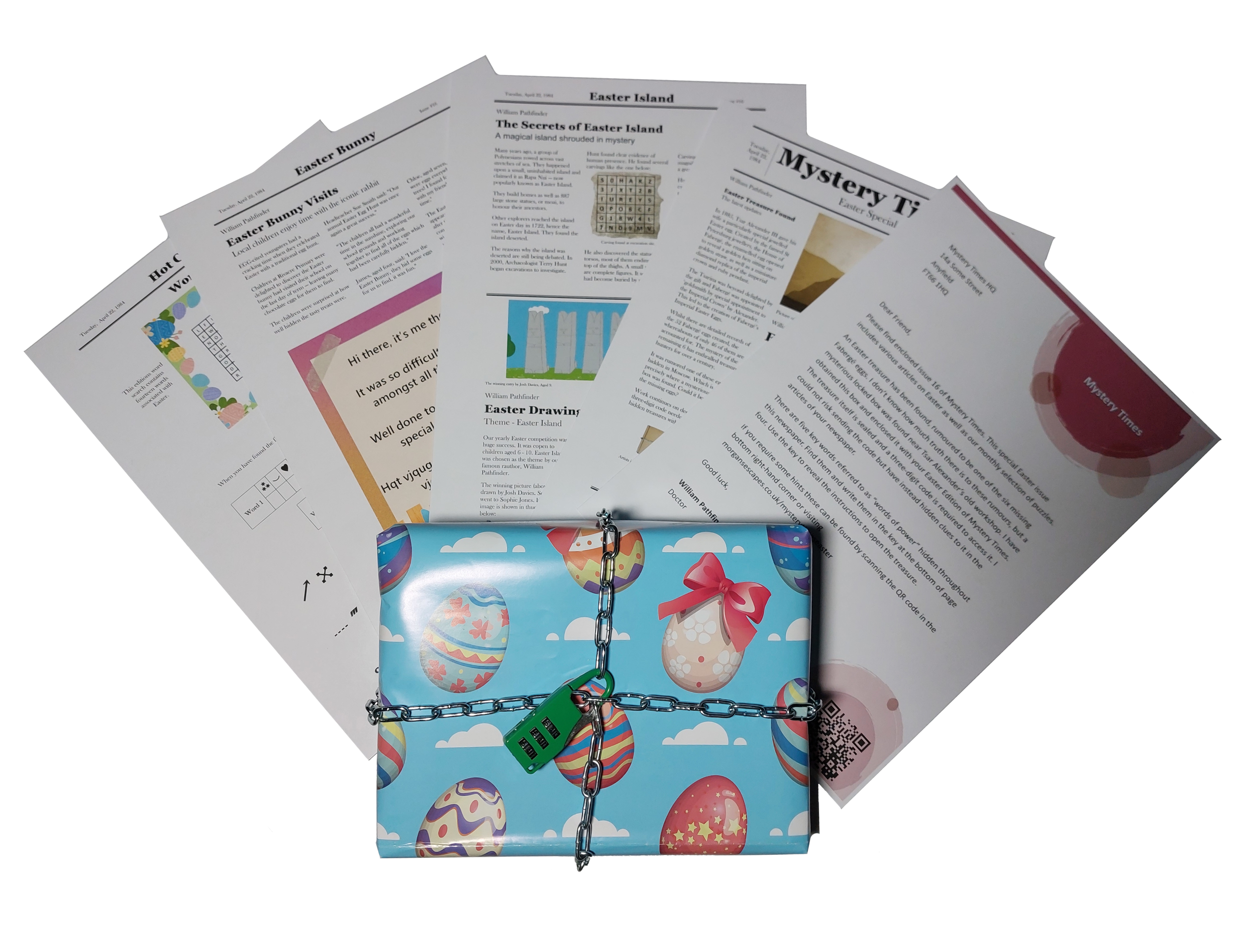This page contains hints for the puzzles contained in the Mystery Times Easter Newspaper.